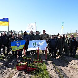 Сьогодні на місці згарищ з’явилися перші саджанці сосни кримської та клена. Цю висадку присвятили оборонцям міста. Символічно, що до створення лісу долучилися бійці 123-ї бригади ТрО ЗСУ, які безпосередньо захищали ці позиції. Ліс, що колись став для воїнів щитом, сьогодні приймає від них перші паростки життя.